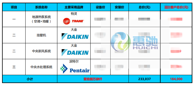 家居集成系統: 特靈地源熱泵  大金掛壁機  大金全熱交換器/新風系統    濱特爾中央凈水