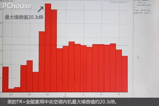 鋪設隔音裝置的室內環境中,吊裝兩臺室內機,以專業的噪音儀,分別測試美的TR+全能家用中央空調和日系品牌中央空調運行時所產生的噪音值變化。測試數據顯示,美的TR+全能家用中央空調內機最大噪音值約20.3分貝(試想一下,一只蚊子飛過約為35分貝,20分貝幾乎是超靜環境),某品牌中央空調內機最大噪音值約22.8分貝,美的TR+運行更低噪音。