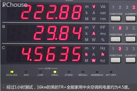 一般16kw的中央空調1小時耗電量為7.3度左右,而美的TR+全能家用中央空調全負荷運行1小時的耗電僅有4.5度,省電效果明顯。